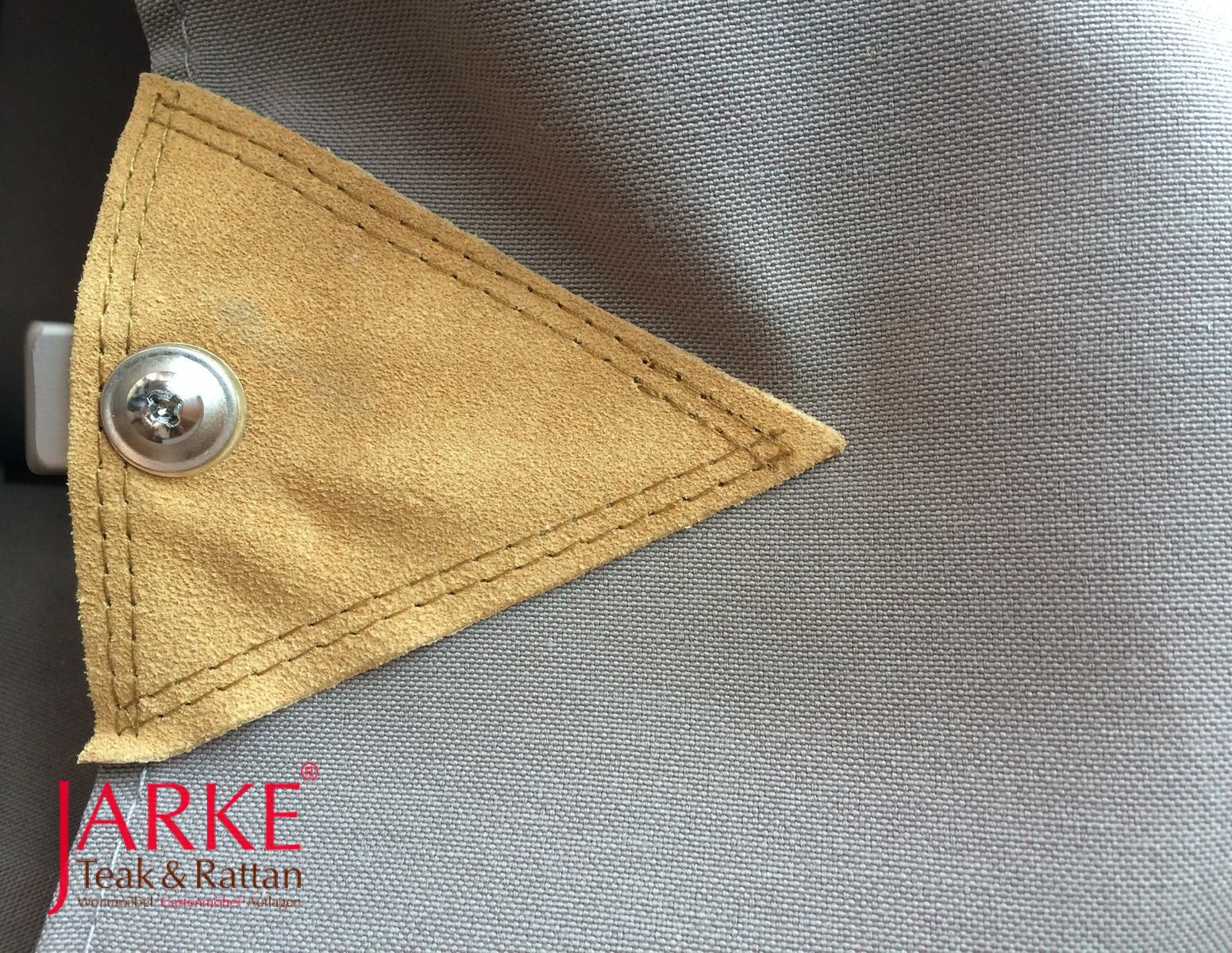 Die verstärkten Lederecken am Schirmtuch bieten zusätzlichen Schutz und erhöhen die Lebensdauer des Schirms. Diese stilvollen Details verleihen dem Schirm eine edle Note und verhindern Abnutzung an den Ecken. Dank des doppelten Flaschenzugsystems lässt sich der Sonnenschirm mühelos öffnen und schließen. Mit minimalem Kraftaufwand genießen Sie maximalen Komfort und können den Schirm ganz nach Ihren Wünschen einstellen.