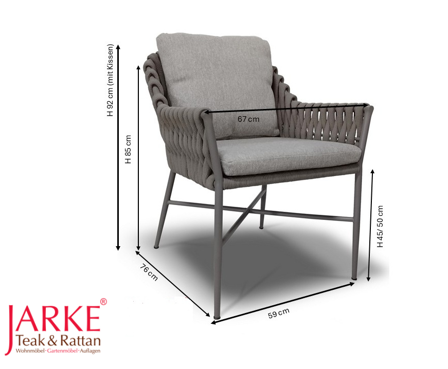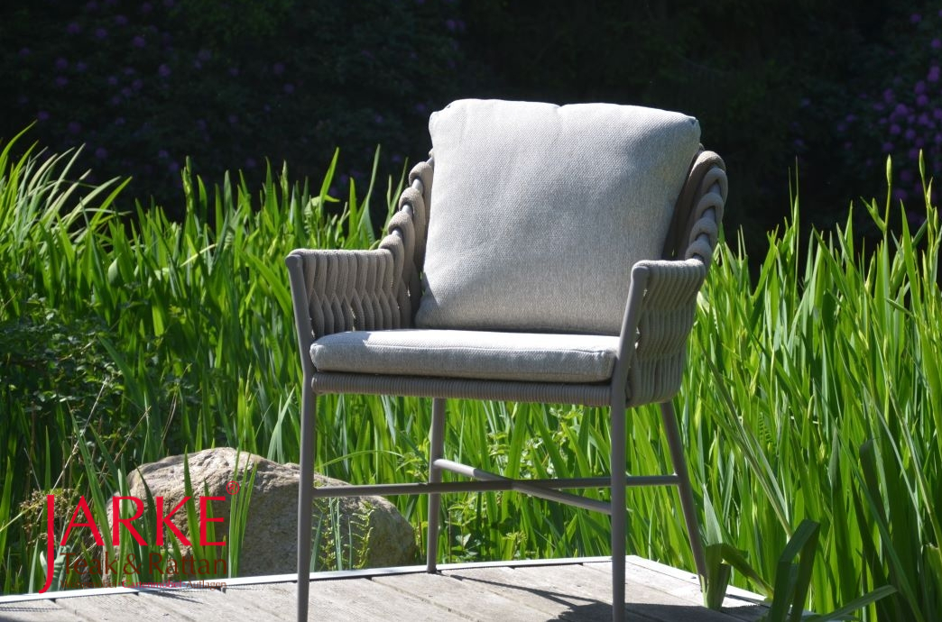 Outdoor Stuhl "Lucca, Taupe, mit Rope-Bespannung, Outdoor-Kissen