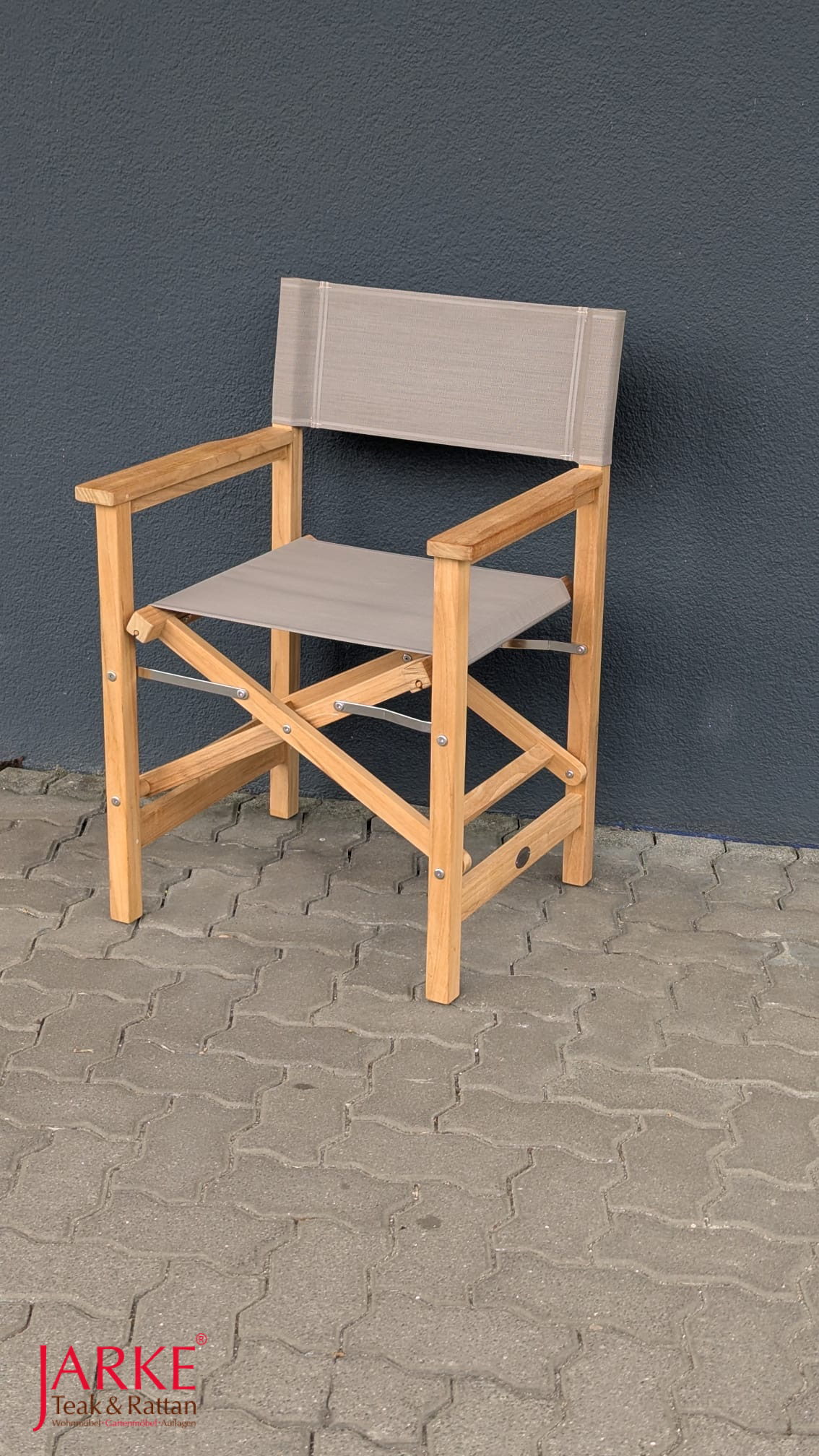Regiestuhl „Bristol“, Bezug aus 100% Textline Taupe, gefertigt aus FSC Teak Kernholz